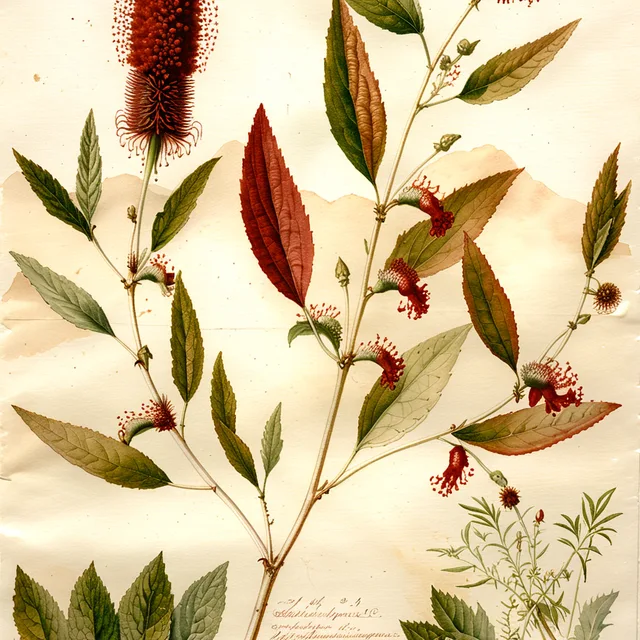 La Hierba del cáncer, conocida científicamente como Acalypha arvensis (perteneciente a la familia Euphorbiaceae), es una planta herbácea que presenta un porte erecto y puede alcanzar una altura de aproximadamente 50 centímetros. Para alguien que nunca ha visto esta especie, puede imaginarse como una pequeña planta de aspecto delicado pero resistente, con tallos que suelen ser vellosos o cubiertos de finos pelos en la zona de los nudos, lo que le otorga una textura ligeramente rugosa al tacto.