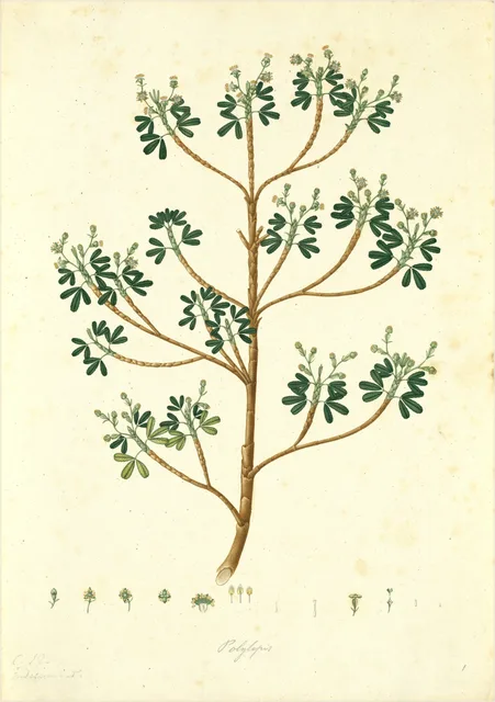 Las hojas son de tamaño reducido, de forma elíptica u ovada, con una disposición alterna a lo largo de las ramas. Presentan una textura coriácea que ayuda a minimizar la pérdida de agua por transpiración. Las flores son pequeñas, de colores discretos, organizadas en inflorescencias que permiten la polinización en condiciones climáticas adversas. Los frutos son pequeños frutos secos que contienen semillas capaces de germinar en suelos con escasa materia orgánica.